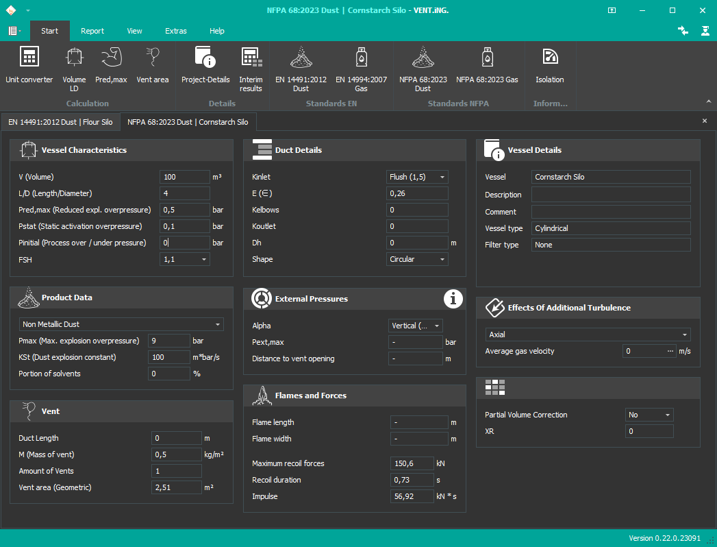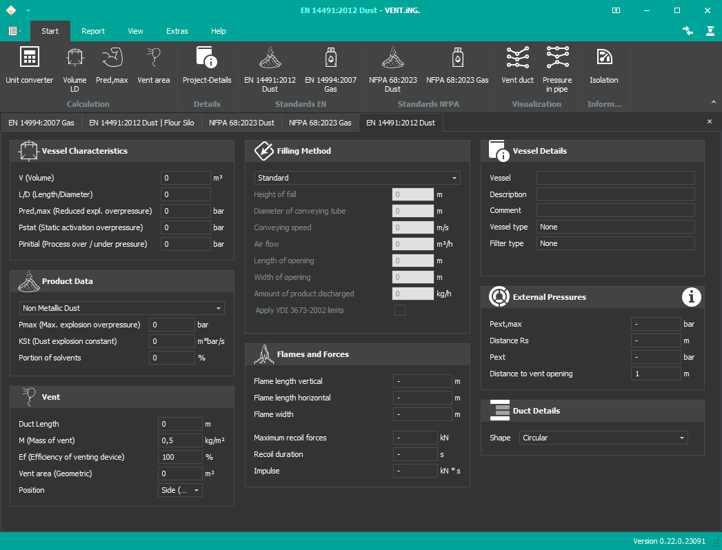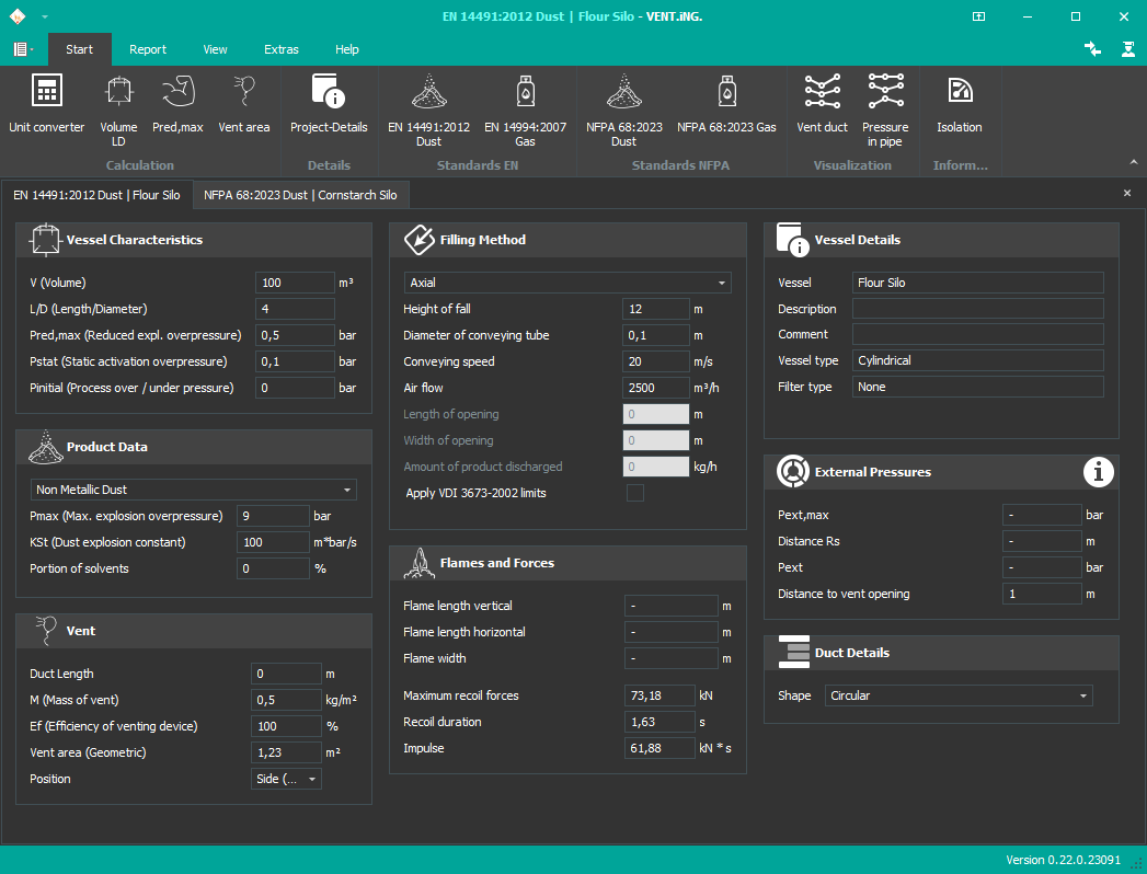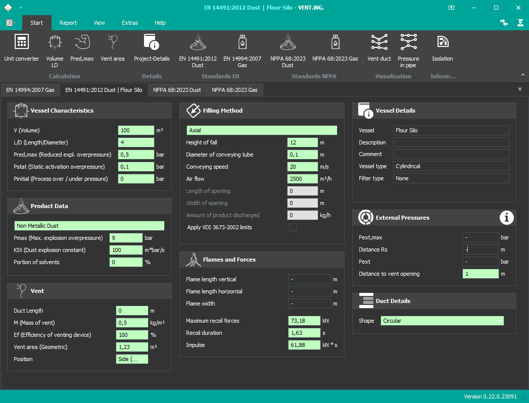 With VENT.iNG., a software is available for the explosion protection expert to enable them to apply the two most common explosion VENT.iNG. approaches in the world, following EN and NFPA.